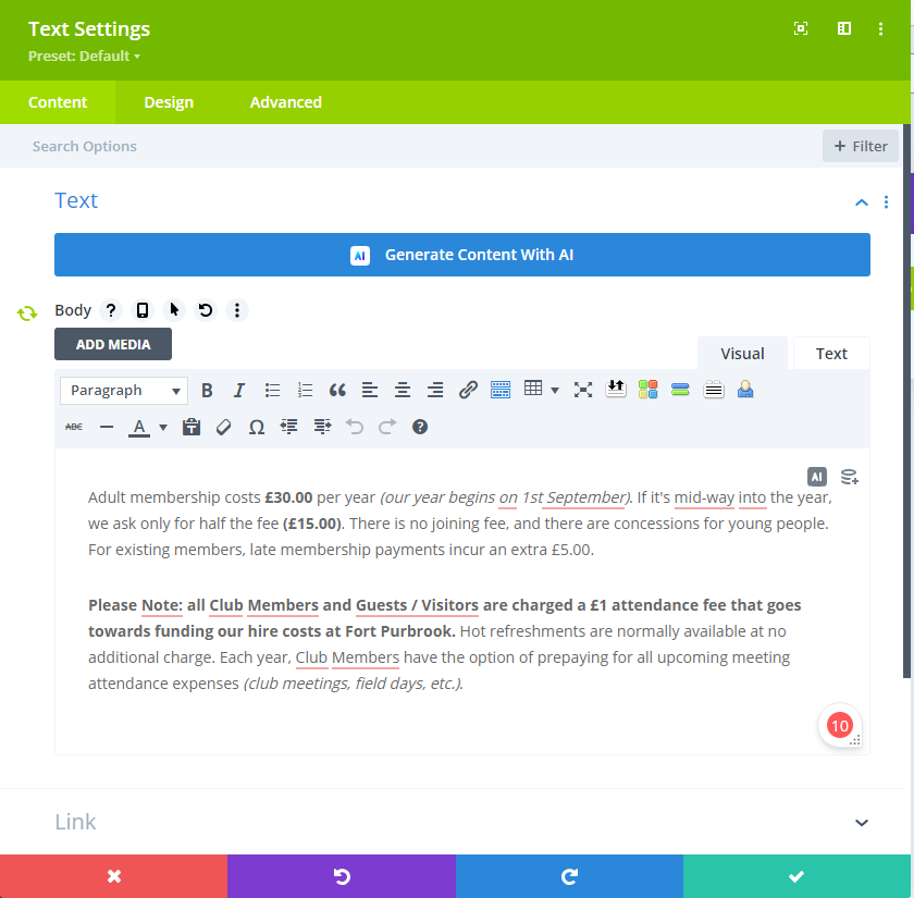 - An editor opens. Use this editor to re-write the membership fees.